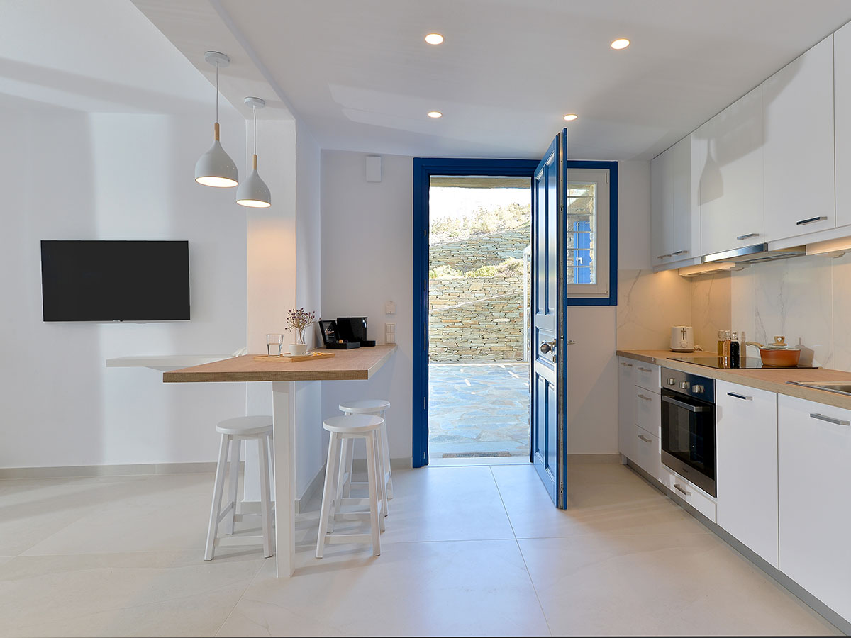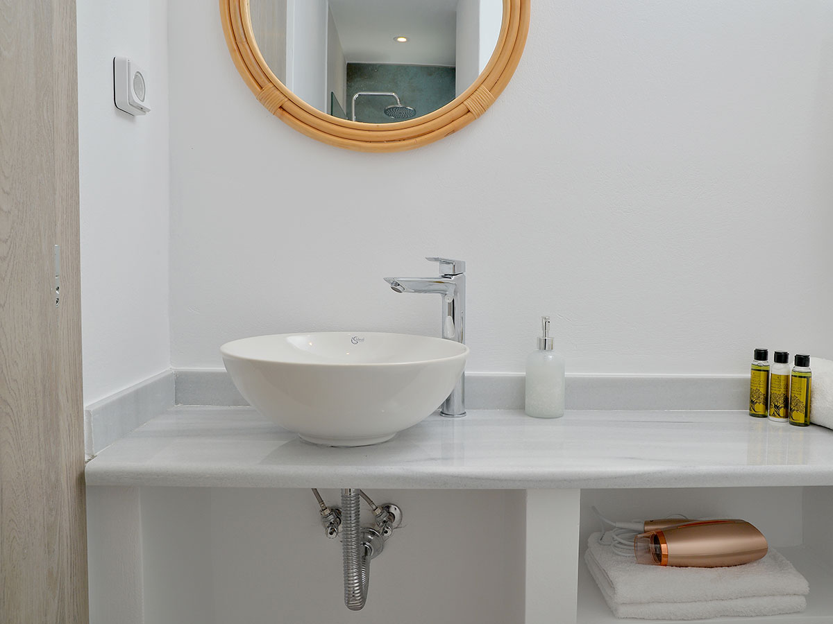Η βίλα Υδρούσα μπορεί να νοικιαστεί μαζί με το ανεξάρτητο studio Υδρούσα, με δυνατότητα φιλοξενείας 2 επιπλέον ατόμων και λουτρό με ντουζιέρα.